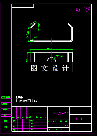 此制件的形状较简单,且对称,成型时有圆角过渡,便于模具的加工,但产品外形无圆角过度,为减少冲压时在尖角处开裂的现象,需要在产品外形增加圆角,同时也可以防止尖角部位刃口的过快磨损。