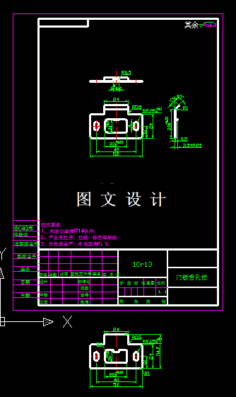 本文阐述了冲压复合模的结构设计及工作过程,通过工艺分析,采用落料冲孔,弯曲等工序,通过冲裁力、顶件力、卸料力等计算,确定模具类型。该模具采用后侧导柱模架,导柱和导套采用相同的型号。落料凹模采用整体结构,废料从凸凹模的开槽中卸出。本模具性能可靠,运行平稳,提高了产品质量和生产效率,降低劳动强度和生产成本。 冲裁材料为1Cr13,查文献属于不锈钢,抗拉强度400-470MPa,延伸率不小于21%,抗剪强度320-380MPa,塑性好,焊接性好,适合冲裁。