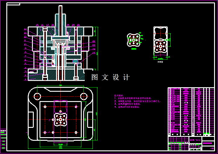 通过分析决定采用复合模形式,然后参考其他模具结构以及查手册和计算设计。当所有的参数计算完后,对模具的装配方案,对主要零件的设计和装配要求技术要求都进行了分析。在设计过程中除了设计说明书外,还包括模具的装配图,非标准零件的零件图等。
