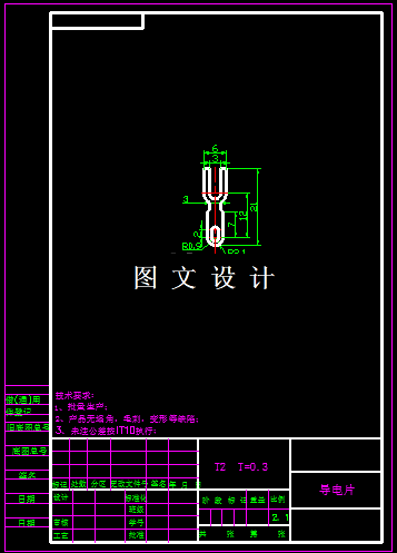 产品所用的材料为T2,属于纯铜,软态,其力学性能如下:τ=160MPa,σb=200MPa,该制件形状简单,外形尺寸较小,且对称,孔到边的距离为2.1-0.9=1.2mm,远大于两倍的材料厚度,根据资料可查,大于等于材料厚度的1.5倍即可以采用复合模,本次设计从产品尺寸来看,设计复合模或者级进模,均可以。从形状看,厚度一般,属于普通冲压件。