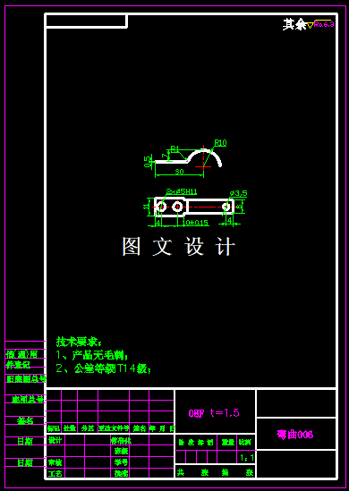 从产品外形尺寸分析,该产品尺寸很小,形状规则,都是直线过渡,为方便设计模具,落料时直角尖角处建议增加圆角过渡,这样设计模具时,凹模热处理后加工时不容易开裂,为便于模具的加工和减少冲压时在尖角处开裂的现象,同时也可以防止尖角部位刃口的过快磨损。