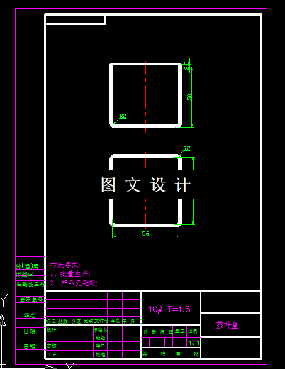 茶叶盒冲压模具设计,包括落料拉伸模,二次拉伸模具设计,装配图,零件图,设计计算。本次课题如上图,拉深高度高,且四周有R角过渡,形状较简单,且对称,便于模具的加工,通过相关计算及查表,计算出切边余量,拉深高度要超过50mm才行,所选材料为10#钢,属于优质碳素结构钢,其抗拉强度为300-440MPa,抗剪强度为260-340MPa,屈服极限210MPa,延伸率29%,适合做拉深件。