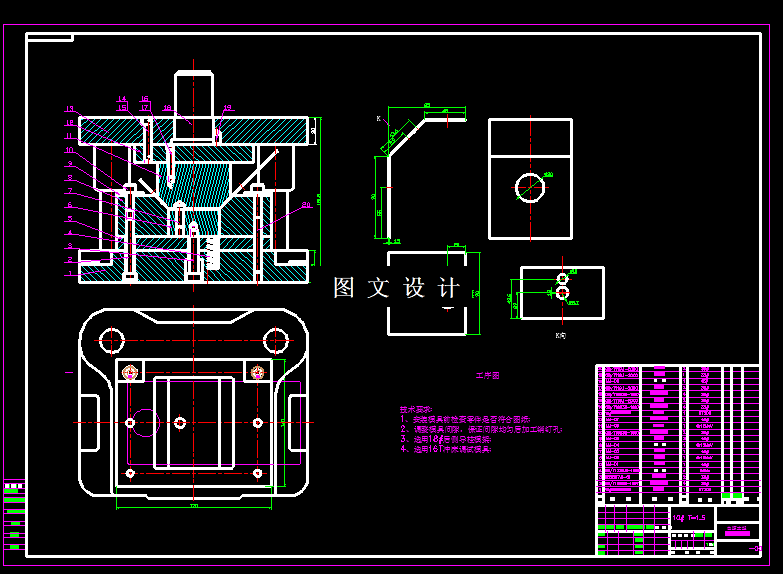 电源支架落料冲孔,弯曲模具设计,包括装配图,零件图,设计计算。 由于产品有四角是尖角,在模具加工时容易出现产品应力集中现象,模具容易开裂,因此这里需要增加R角,根据产品材料厚度及形状,这里增加R1。