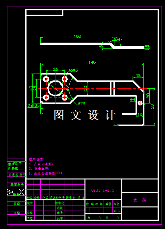 支架模具设计,包括落料冲孔,成型,两套装配图,零件图,设计计算。 计算该产品展开尺寸时,当需要精确的求出弯曲毛坯的展开长度时,就必须精确的求出变形中性层的位置。确定位置之后就可以进行毛坯展开长度的计算了,这需要一个中性层的位移系数,此系数对于弯曲形状及弯曲程度不同,数值也不同,需要根据实际的模具调节展开尺寸。