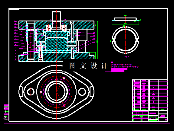 外固定圈模具设计,包括落料冲孔,翻孔模具装配图,零件图,设计计算。 此制件的形状为圆形,其中工序有落料,冲孔,翻孔等,且对称,有圆角过渡,便于模具的加工和减少冲压时在尖角处开裂的现象,同时也可以防止尖角部位刃口的过快磨损。
