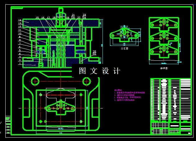 托架冲压工艺与模具设计,包括装配图,零件图,设计计算。 弯曲件厚度为2.0mm,因为成型弯曲件需要经过落料、冲孔、弯曲,才能最后实现产品型,由于产品形状简单,弯曲高度也小,所以不需要单独计算弯曲系数及尺寸分析,展开尺寸需要根据实际弯曲模具的间隙和模具结构来调试。