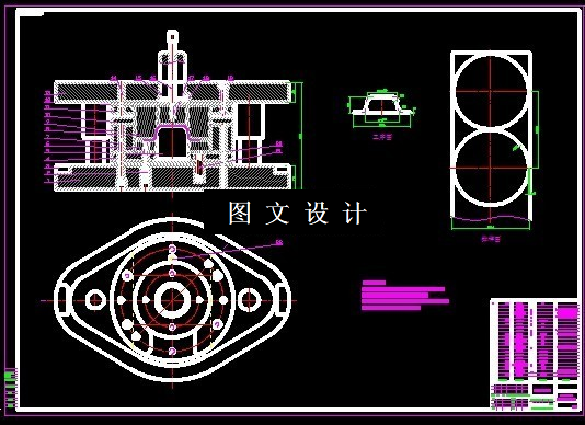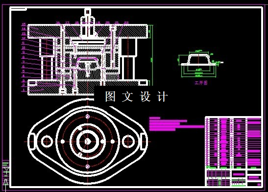拖车轴端盖模具设计,包括两套图纸装配图,零件图,设计计算。 本次设计的课题为拖车轴端盖,从产品的形状来看,拖车轴端盖属于拉深件,工艺有拉深,落料,冲孔,切边等工序,由于工序比较多,可以考虑工序的复合,即可以考虑设计复合模。形状的形状较简单,且对称,有圆角过渡,便于模具的加工和减少冲压时在尖角处开裂的现象,同时也可以防止尖角部位刃口的过快磨损。