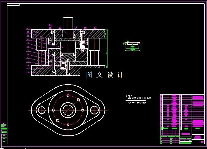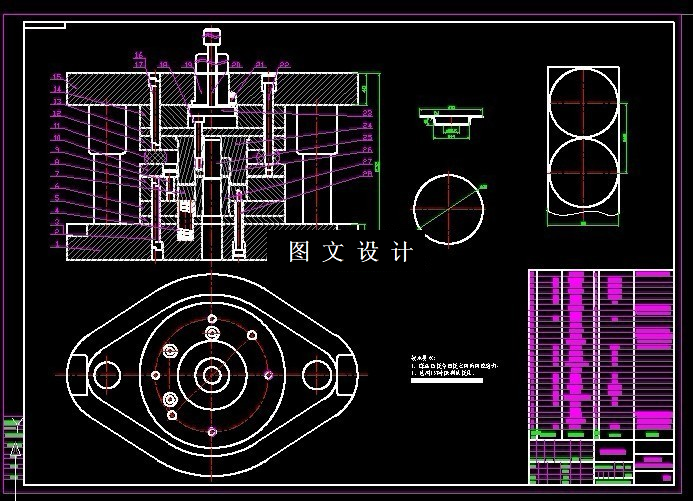 环形垫圈模具设计,落料拉伸冲孔,翻边,包括两套装配图,零件图,设计计算。 该产品需要的工序是,落料,拉伸,冲孔,翻边等工序,本设计中考虑到大批量生产,连续模,难度和成本都增加,所以考虑用复合模来做,本设计中选用落料拉深冲孔模,翻边模。