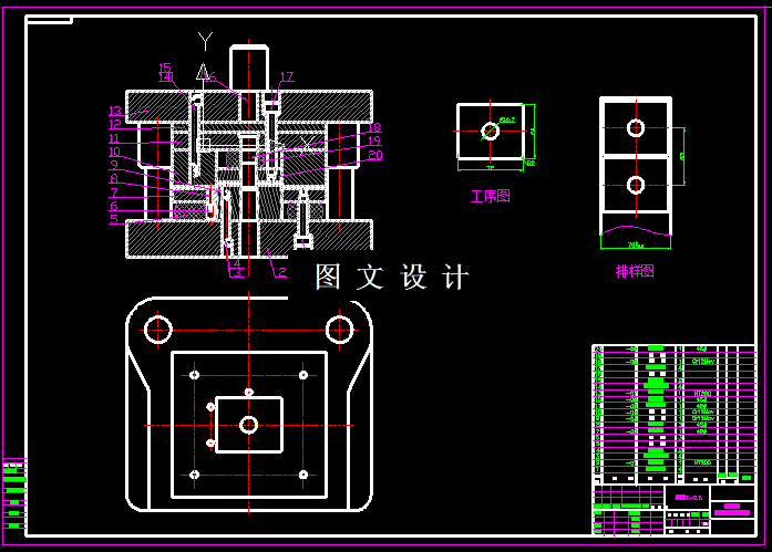 触桥片落料冲孔,弯曲模具设计,包括两套装配图,零件图,设计计算。 该工件包括落料、冲孔,成型三个基本工序,可以有以下五种工艺方案: 方案一:先落料,后冲孔,成型,采用单工序模生产。 方案二:落料-冲孔复合冲压,采用正装复合模生产。然后成型 方案三:落料-冲孔复合冲压。采用倒装复合模生产。然后成型 方案四:落料-冲孔级进冲压,采用级进模生产。然后成型 方案五:冲孔-切废料,成型,切断级进冲压。采用级进模生产。 方案一结构简单,但需三道工序、三副模具才能完成,生产效率也低,如此则浪费了人力、物力、财力,从经济性的角度来考虑不妥当,难以满足大批量的生产要求。 方案二采用正装复合模具生产,只需两副模具即可,模具结构紧凑,冲出的制件的精度及生产效率都比较高,适合大批量生产。制件质量由于压料冲裁同时得到校平,制件平正不弯曲,且有较好的剪切断面。冲裁件内孔和外缘的相对位置精度容易保证,而且板料的定位精度要求比级进模低。冲裁复杂形状零件,模具制造工作量和成本比级进模低。 方案三采用倒装复合模生产,与方案二相比,倒装复合模具把凸凹模放在下模,虽然模具结构较方案二简单,可冲工件的孔边距也较大,但是工件的平整性较方案二差。 方案四采用落料冲孔级进模具生产,也是需要两付副模具,制造精度高,先落料后冲孔,但是其模具结构复杂,生产周期长,成本高。 方案五也采用级进模生产,先冲孔后切废料,成型,切断,与方案四差不多,同样存在模具结构复杂,成本高的缺点。 通过上述五种方案的分析比较,该工件的冲压生产采用方案三为佳