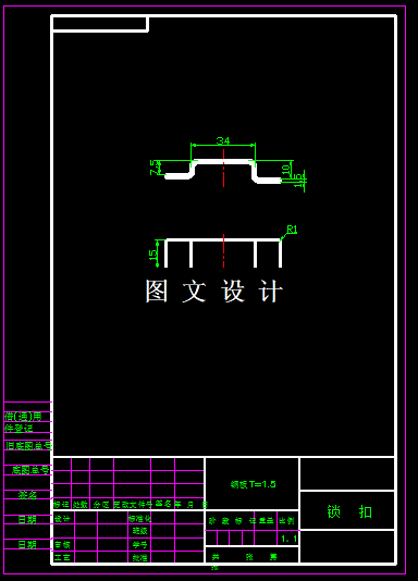 锁扣落料,弯曲模具设计,包括两套装配图,零件图,设计计算。 本次通过对冲压落料模,成型模的结构设计及工作过程,通过对产品的工艺分析,采用落料和成型工序,通过冲裁力、顶件力、卸料力等计算,确定模具类型。该模具采用常用的后侧导柱模架,。落料凹模采用整体结构,整个模具结构采用正装结构,产品由下模废料孔中出来。本模具性能可靠,运行平稳,提高了产品质量和生产效率,降低劳动强度和生产成本。