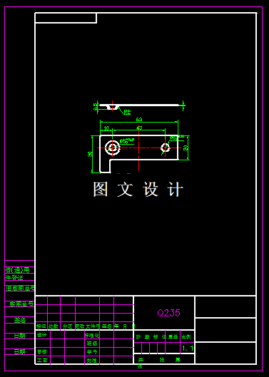 后托架落料冲孔复合模设计,包括装配图,零件图,设计计算,工艺设计。 后托架所用的材料为Q235,其力学性能如下:τ=260~320Mpa,σb=320~400 Mpa, σs=200Mpa。(《冷冲压工艺与模具设计》P322),零件图上未注公差等级,属自由尺寸,按IT12级确定工件尺寸的公差.该制件形状简单,尺寸较小,厚度一般,属于普通冲压件。