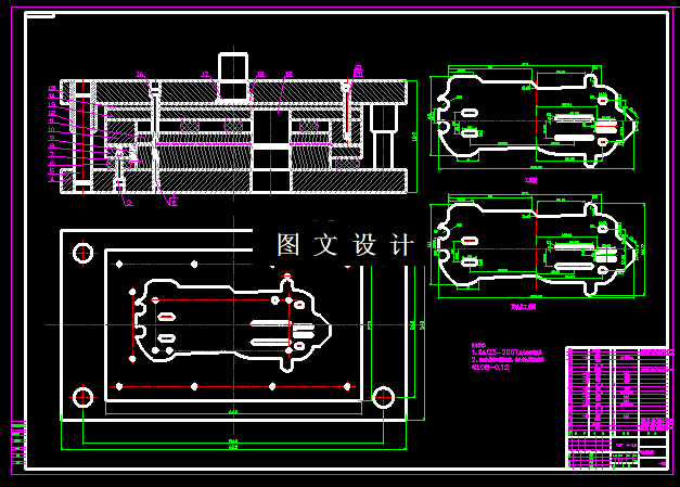 主支架落料冲孔复合模设计,包括装配图,零件图,设计计算。 此制件的形状比较复杂,且不对称,但没有圆角过渡,不方便模具的加工,同时在模具冲压时,凹模尖角处容易出现开裂的现象,凸模尖角处容易迸裂,为防止这样的情况出现,也为防止尖角部位刃口的过快磨损,产品尖角处应加上R角,产品材料厚度为2mm,R角应改为R1.0。