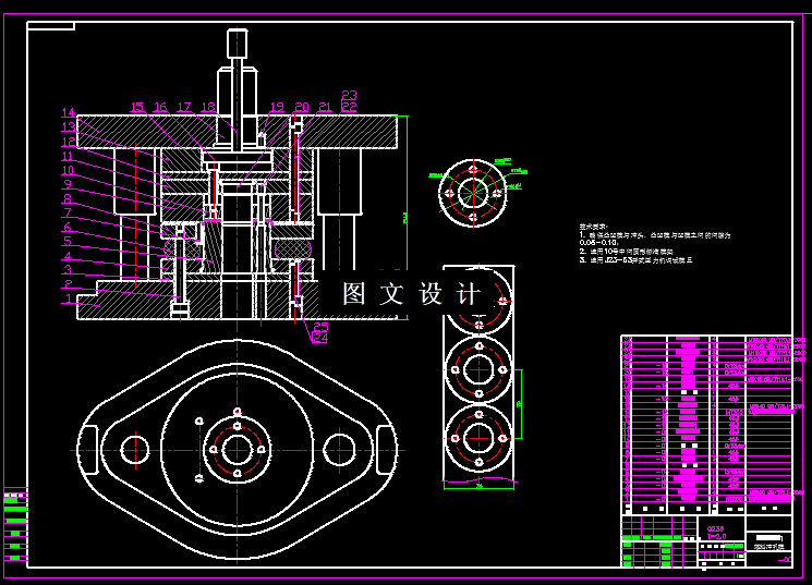 圆形垫片复合模具设计,包括装配图,零件图,设计计算。 本次设计的产品是圆形垫片,是一个典型的冲裁件.现对其进行工艺分析,如下: 此冲裁件为材料Q235,具有良好的可冲压性能,冲裁件结构形状简单。零件图上所有尺寸均有标注公差,公差相对较大。可以冲裁,适合普通冲裁。
