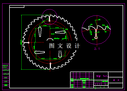 齿形锯片落料冲孔复合模具设计,包括装配图,零件图,设计计算。 此冲裁件为材料50#钢,具有良好的可冲压性能,冲裁件结构形状简单,但内、外有尖锐清角,为提高模具寿命,将所有90°清角改为R0.3的圆角过渡。零件图上所有尺寸均未标注公差,属自由尺寸,可按IT14级确定工件尺寸的公差。