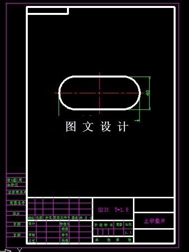 止动垫片落料模设计,包括装配图,零件图,设计计算。 该冲裁件包括落料,冲孔两个基本工序,可采用的冲裁方案有单工序冲裁,复合冲裁和级进冲裁三种.零件属于中批量生产,因此采用单工序须要模具数量较多,生产率低,所用费用也高,不合理;若采用复合冲,可以得出冲件的精度和平直度较好,生产率较高,模具强度也能保证;用级进模冲裁时,生产率高,操作方便,但模具加工成本高,维修不方便,通过以上比较,选择单工序模具的冲裁工艺方案,即落料模,冲孔模,本设计中只设计落料模。