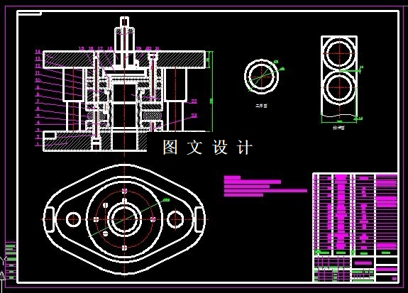 同心件落料冲孔模具设计,包括装配图,零件图,设计计算。 此制件的形状较简单,且同心,有圆角过渡,便于模具的加工和减少冲压时在尖角处开裂的现象,同时也可以防止尖角部位刃口的过快磨损。产品材料为Q235,厚度为2.0,此材料为普通碳素钢,其抗剪强度为310-380Mpa,抗拉强度为440-470Mpa。