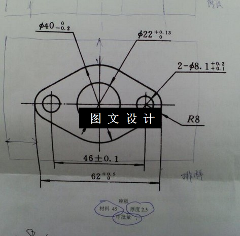 座板落料冲孔模设计,包括装配图,零件图,设计计算。 产品材料为45#钢,此材料属于优质碳素结构钢,其抗剪强度440-560Mpa,抗拉强度550-700Mpa,屈服极限360Mpa,具有良好的冲裁性。