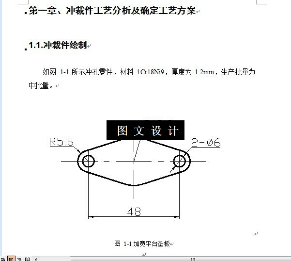 加宽平台垫板冲孔模具设计,包括装配图,非标零件图,设计计算。 冲孔件的孔边距与孔间距符合C≥(1~1.5)t,即大于1.2~1.8mm。冲孔件不属于弯曲件或拉伸件,不会引起凸模冲孔时受水平推力而折断。尺寸精度工件图上为φ6,一般冲压均能满足其尺寸精度要求。该加宽平台垫板可以设计并适合冲裁。