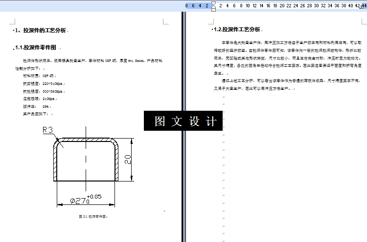 CAD-小盖落料拉伸工艺与模具设计,包括装配图,零件图,设计计算。 本零件是大批量生产件,用冲压加工方法由于生产效率高和材料利用率高,可以取得较好的经济效益。由拉深件零件图可知,该零件为一般的拉深拉深结构件,形状比较简单,无凹陷或其他形状突变,尺寸比较小,而且左右完全对称,冲压时受力较均匀。其尺寸精度、各处的圆角半径均符合拉深工艺要求。因此要注意保证平面度和垂直度。