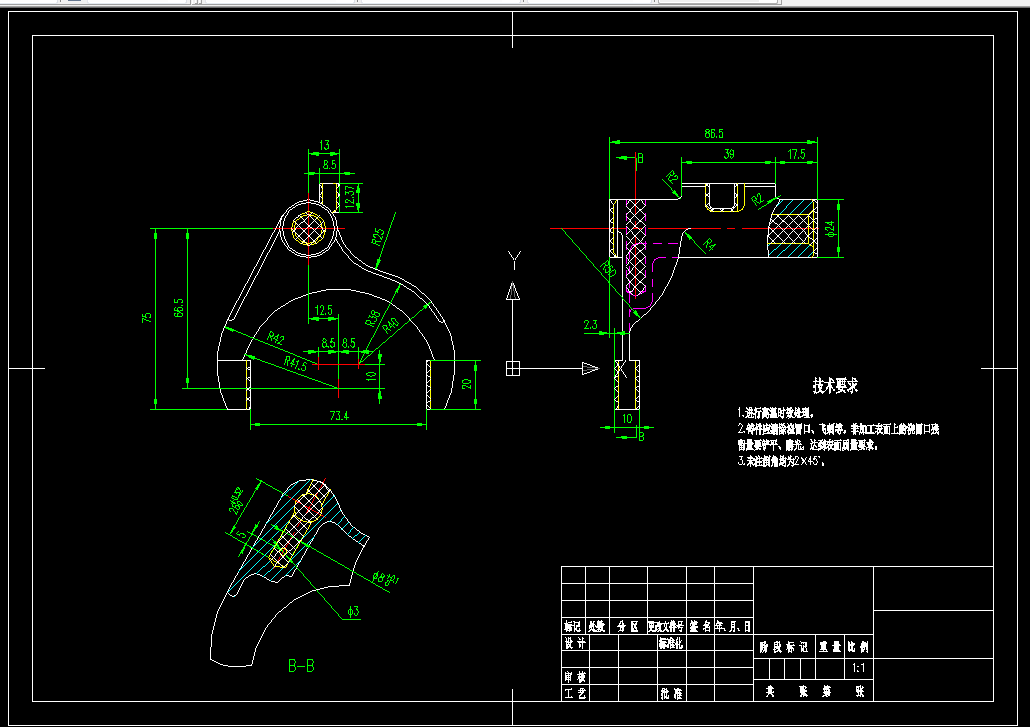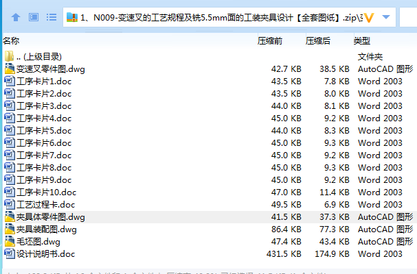 变速叉加工工艺规程及其铣5.5mm侧面的夹具设计是包括零件加工的工艺设计、工序设计以及专用夹具的设计三部分。在工艺设计中要首先对零件进行分析,了解零件的工艺再设计出毛坯的结构,并选择好零件的加工基准,设计出零件的工艺路线;接着对零件各个工步的工序进行尺寸计算,关键是决定出各个工序的工艺装备及切削用量;然后进行专用夹具的设计,选择设计出夹具的各个组成部件,如定位元件、夹紧元件、引导元件、夹具体与机床的连接部件以及其它部件;计算出夹具定位时产生的定位误差,分析夹具结构的合理性与不足之处,并在以后设计中注意改进。