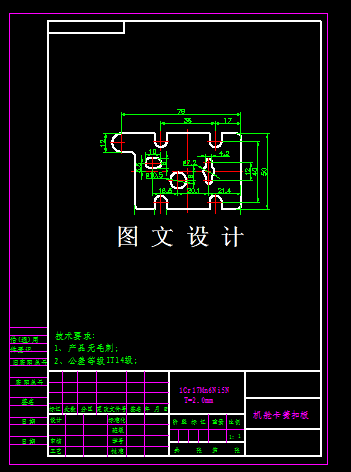 CAD-机舱卡簧扣板倒装复合模设计,包括装配图,零件图,设计计算。 冲裁材料为1Cr17Mn6Ni5N(即201不锈钢),查文献 :屈服点σs=400MPa,抗拉强度σb=540-700MPa,延伸率不小于20%,抗剪强度τ=430-550MPa,塑性好,焊接性好,适合冲裁。