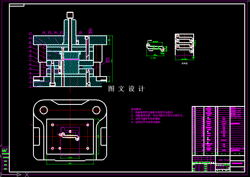 CAD-垫板落料冲孔倒装复合模具设计。包括装配图,零件图,设计计算。 本设计通过对垫板的复合模设计的工艺性分析,确定了正确的工艺方案。从而对模具设计方案,以及冲压设备作出了分析与选择。通过分析决定采用复合模形式。