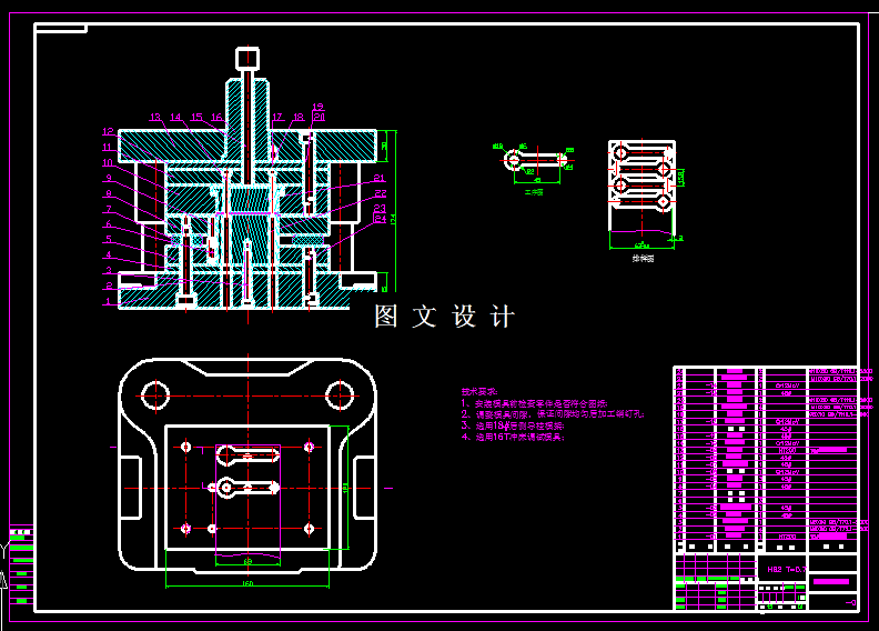 CAD-焊片倒装落料冲孔复合模设计。包括装配图,5张非标零件图,设计计算。 ①材料:该冲裁件的材料H62是黄铜,具有较好的可冲压性能. ②零件结构:该冲裁件结构简单,四周均为R角,适合冲压. ③尺寸精度:零件图上所有未注公差的尺寸,属自由尺寸,可按工T12级确定工件尺寸的公差。孔边距6无公差。