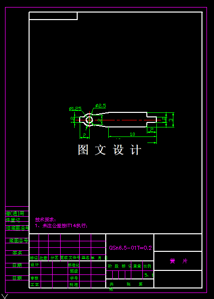 CAD-簧片落料冲孔倒装复合模设计,装配图,2张非标零件图,设计计算。 该产品所选材料为QSn6.5-01,查文献 :属于锡磷青铜(软态),屈服点σs=140MPa,抗拉强度σb=300MPa,延伸率不小于38%,抗剪强度τ=260MPa,塑性好,焊接性好,适合冲裁。
