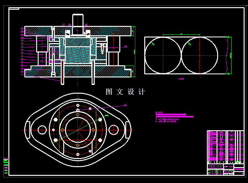 CAD-压盖落料拉伸倒装复合模具设计,包括装配图,所有非标零件图。 本次设计的课题为压盖,从产品的形状来看,压盖属于拉深件,工艺有拉深,落料等工序,由于工序比较多,可以考虑工序的复合,即可以考虑设计复合模。形状的形状较简单,且对称,有圆角过渡,便于模具的加工和减少冲压时在尖角处开裂的现象,同时也可以防止尖角部位刃口的过快磨损。