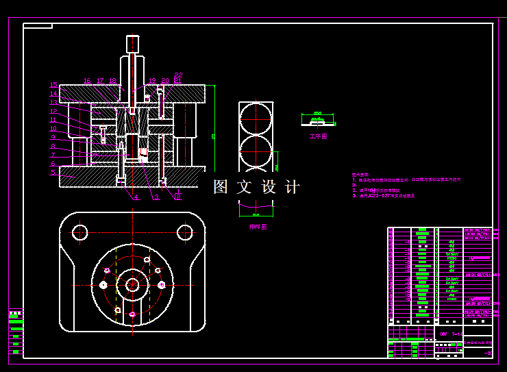 保持架落料拉伸倒装复合模具设计,包括装配图,所有非标零件图。 此制件的形状较简单,且对称,属于浅拉深件,外形是属于无凸缘拉深,中间属于有凸缘拉深,然后冲中间孔,整个件都是圆的,便于模具的加工和减少冲压时在尖角处开裂的现象,同时也可以防止尖角部位刃口的过快磨损。