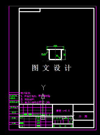 漏油器外壳落料拉伸倒装复合模具设计,包括装配图,所有非标零件图,3D图。 产品所用的材料为08钢,属于优质碳素结构钢,其力学性能如下:τ=260~360Mpa,σb=330~450Mpa,σs=200Mpa。(《冷冲压工艺与模具设计》P322),零件图上未注公差等级,属自由尺寸,按IT10级确定工件尺寸的公差。该制件形状简单,尺寸较小,厚度一般,属于普通冲压件。
