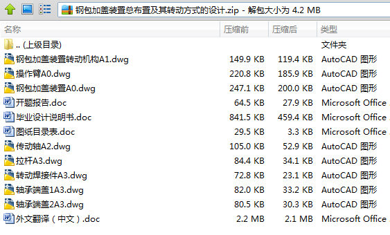 本文是依据钢包加盖装置生产过程和工作原理,首先选定合适的方案,根据方案设计操作臂和支撑柱体,同时选择相应的液压缸并进行校核;然后根据相应的条件设计计算转动机构;最后对传动轴和其他零件进行强度校核,最终完成设计。