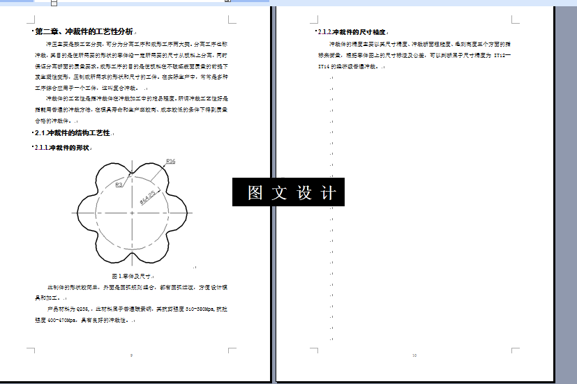 花型件落料模设计,包括装配图,3张非标零件图。 此制件的形状较简单,外面是圆弧规则组合,都有圆弧过渡,方便设计模具和加工。产品材料为Q235,,此材料属于普通碳素钢,其抗剪强度310-380Mpa,抗拉强度400-470Mpa,具有良好的冲裁性。