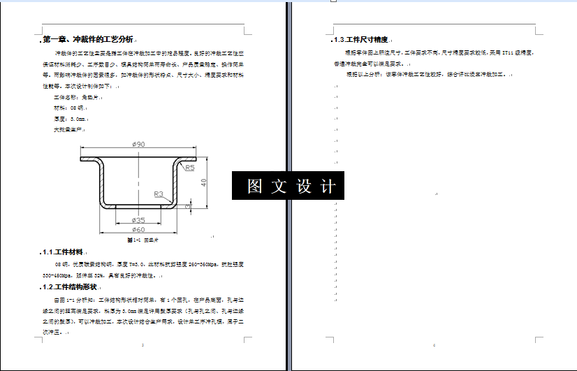 拉伸件冲孔模设计,包括装配图,3张非标零件图。 工件结构形状相对简单,有1个圆孔,在产品底面,孔与边缘之间的距离满足要求,料厚为3.0mm满足许用壁厚要求(孔与孔之间、孔与边缘之间的壁厚),可以冲裁加工,本次设计结合生产需求,设计单工序冲孔模,属于二次冲压。