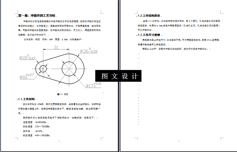 托板落料冲孔复合冲裁模设计,包括装配图,6张非标零件图。 工件结构形状相对简单,有2个圆孔,孔与边缘之间的距离满足要求,料厚为2.0mm满足许用壁厚要求(孔与孔之间、孔与边缘之间的壁厚),可以冲裁加工。