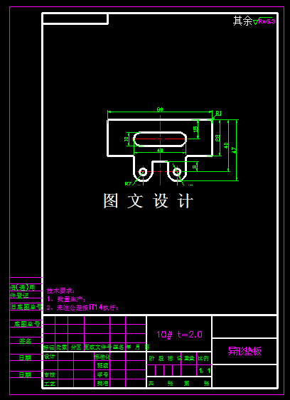 异形垫片复合模设计,装配图+8张零件图。此制件的形状较复杂,四角圆角过渡,这样设计模具时,凹模热处理后加工时不容易开裂,为便于模具的加工和减少冲压时在尖角处开裂的现象,同时也可以防止尖角部位刃口的过快磨损。产品材料为10#钢,此材料属于优质碳素结构钢,其抗剪强度260-340Mpa,抗拉强度300-440Mpa,屈服极限210Mpa,具有良好的冲裁性。