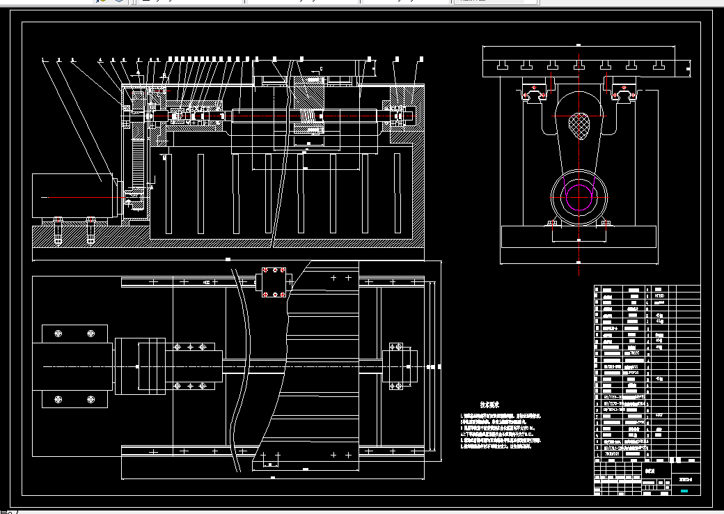XK2313-3数控定梁定柱龙门铣床纵向进给部件设计,主要技术参数: (1)工作台面积(宽 X 长):1300X3000mm; (2)工作台 T 型槽9-22X130 (3)三向行程:3000/1500 /800mm (4)三向快速移动速度:10/10/10m/min; (5)工作台最大承重 kg:5000kg; (6)快速启动加速时间 s:0.3S; 工作台厚度:215mm 工作台重 量(kg)2650kg 定位精度:X0.02/1000 0.04/全程 Y0.02/1000 0.03/ 全 程; Z 0.02 重复定位精度0.01 (2)三向进给传动形式:均采用同步带减速滚珠丝杠传动形式,减速比推荐为 X(纵向)2、2.5 或 3(设计选择) (3)三向滚珠丝杠传动的运动组合形式:丝杠旋转和轴向固定,螺母移动。 (4)三向导轨:X、Y 向采用滚动导轨,Z 向采用矩形滑动+贴塑导轨结构。 (5)预计 X 向丝杠系统平均相对最大温升 2C。 (6)采用华中数控系统及其配套交流伺服电机,三轴控制三轴联动,主轴伺服 控制。 正向压力载荷近似分布