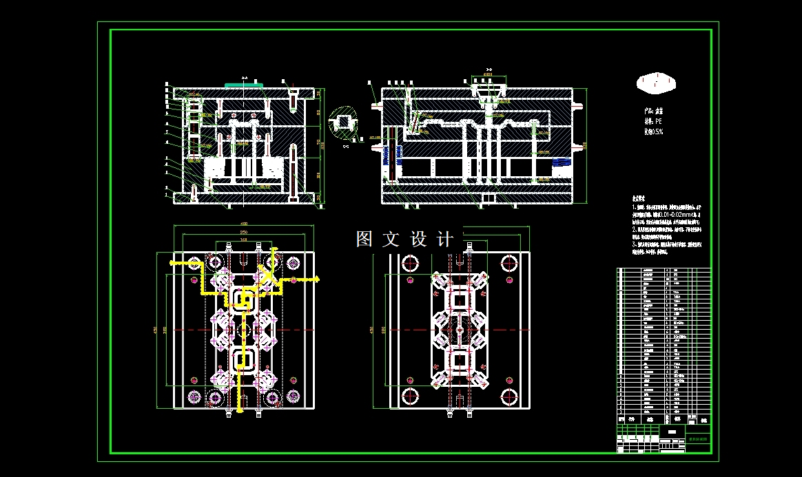此设计为盒盖注塑模具设计(17150),采用一模二腔,侧浇注口进行填充,提供三维(UG格式)+二维装配图1张及主要零件图20张+模流分析+设计报告文档( 文档约1.8W字 57页)。主要论述了塑料模具的成长状态,详细的解释了零件模具的重要性与本次设计的意见选择方形盒塑件制件尺寸。确定模具布局并选择注塑机,开端确定了工艺前提、浇注系统和冷却系统,本模具采取一模二腔,确定合理的成型工艺前提、浇注系统和冷却系统的尺寸。设计本模具时候采取的方法大多数是使用CAD软件进行测绘,进行了三维造型和建模。根据我们三维建模出来的塑件图,详细的分析了这个塑件的结构,并且进行了前模和后模成型系统分分模;设计斜向顶杆机构;以及各个系统的结构。采用了一模一腔配合点胶口的浇口这种型腔布局的结构形式;另外,设计过程中利用了MOLDFLOW软件进行工艺优化;最后,对我们设计好的盒盖的三维模型图,进行转换和制图,出二维的装配的电子图档,以及塑件图,非标零件图这类工程图;根据设计好的图纸,进行最后的注塑机确认。1769402