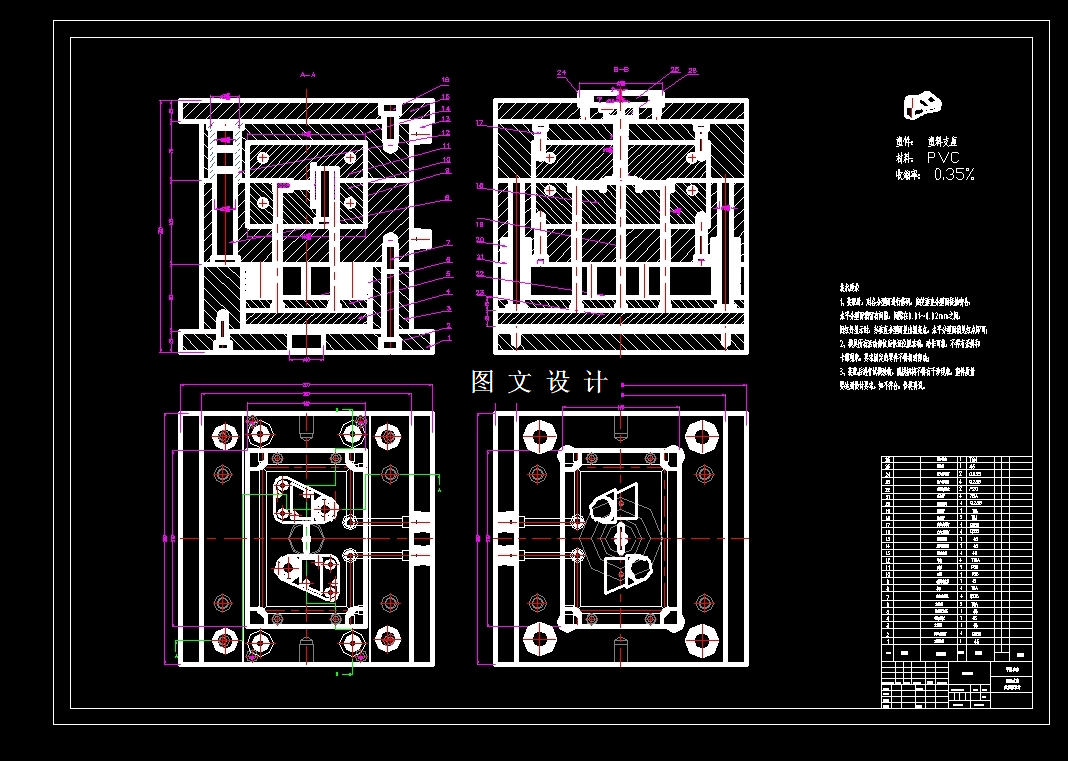 此设计为塑料支架注射模具设计(17143),采用一模二腔,侧浇注口进行填充,提供三维(UG格式)+二维装配图1张及主要零件图10张+设计报告文档( 文档约1.1W字 35页)。本设计介绍了注射成型的基本原理,特别是侧向分型与抽芯机构的结构与工作原理,并对注塑产品提出了基本的设计原则。详细介绍了注射模具的材料及工艺分析,浇注系统、主要零部件、推出机构、温度调节系统和排气系统的设计过程,并对模具各参数选取和校核做相应说明。本设计利用Auto CAD和世界最先进的三维CAD/CAM软件UG,对导柱、导套及各标准件和标准模架进行了参数化设计。