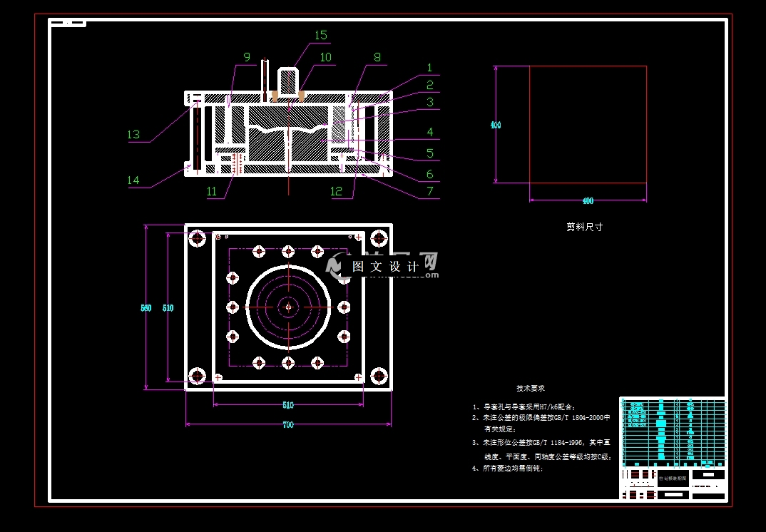 此设计为反射器冲压模具设计(17139),采用材料:20钢,厚度为1mm,提供二维装配图2张及主要零件图17张+设计报告文档( 文档约1.4W字 40页)。先分析零件的冲压工艺;确定模具的总体结构;结合零件的冲压工艺及模具的总体结构设计排样图;根据排样图,计算利用率、冲载力、压力、选用设备及刃口的尺寸。根据资料再用AutoCAD,对模具进行设计,然后绘出装配图和零件图进行标注,并编制零件的加工工艺卡.