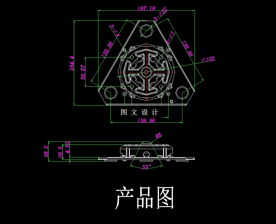 此设计为电机下壳冲压模具设计(17131),采用08F优质碳素结构钢,料厚1mm,提供三维(UG格式)+二维装配图2张及主要零件图16张+工艺卡+设计报告文档( 文档约1.5W字 41页)。本次设计中设计的是一个电机下壳细分工序的工程模,主要是设计拉深落料模及一幅冲孔模。通过对零件的仔细分析与思考,先设计多个方案,在进行分析与对比,最后确定最佳方案。再求出冲压力从而选择合适的冲压设备。接着又依靠凹模周界尺寸选择另外与之有关联的结构零件。经过计算分析出该模具的主要设计,并考虑模具的定位方法,以及卸料件的出件形式;工作的重心在于对于凸模、凹模以及其他重要零部件的设计;接下来选取模具的材料以及制定各个结构的加工方法;最后依靠装备原则,完成装备。