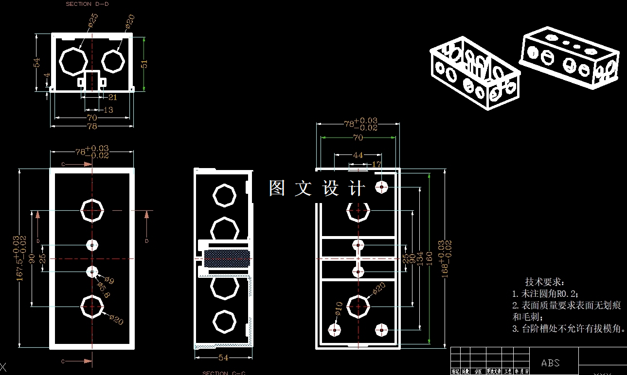 此设计为盒盖注塑模具设计(17076),采用一模一腔,点浇注口进行填充,提供三维(UG格式)+二维装配图1张及主要零件图13张+模流分析+设计报告文档( 文档约1.7W字 49页)。根据三维建模出来的塑件图,详细的分析了这个塑件的结构,并且进行了前模和后模成型系统分分模;设计斜向顶杆机构;以及各个系统的结构。采用了一模一腔配合点胶口的浇口这种型腔布局的结构形式;另外,设计过程中利用了MOLDFLOW软件进行工艺优化;最后,对我们设计好的盒盖的三维模型图,进行转换和制图,出二维的装配的电子图档,以及塑件图,非标零件图这类工程图;根据设计好的图纸,进行最后的注塑机确认。1769308