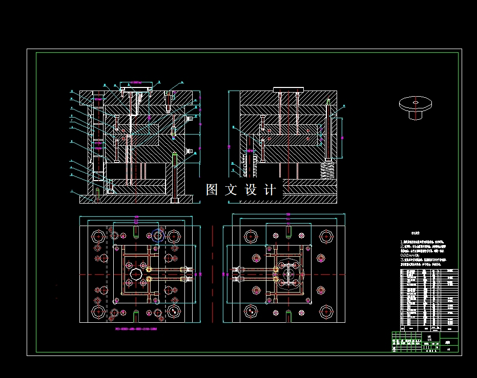 此设计为安装垫板注塑模具设计(17074),采用一模四腔,点浇注口进行填充,提供三维(UG格式)+二维装配图1张及主要零件图10张+设计报告文档( 文档约1.2W字 32页)。本模具采用一模四件,点浇口进料,注射机采用海天HTF80XB型号,设置冷却系统,CAD和UG绘制二维总装图和零件图,选择模具合理的加工方法。设计采用定距拉杆,配合尼龙销(开闭器),实现二次分型,避免了从脱模时型芯之间的动作干涉与开模顺序问题。