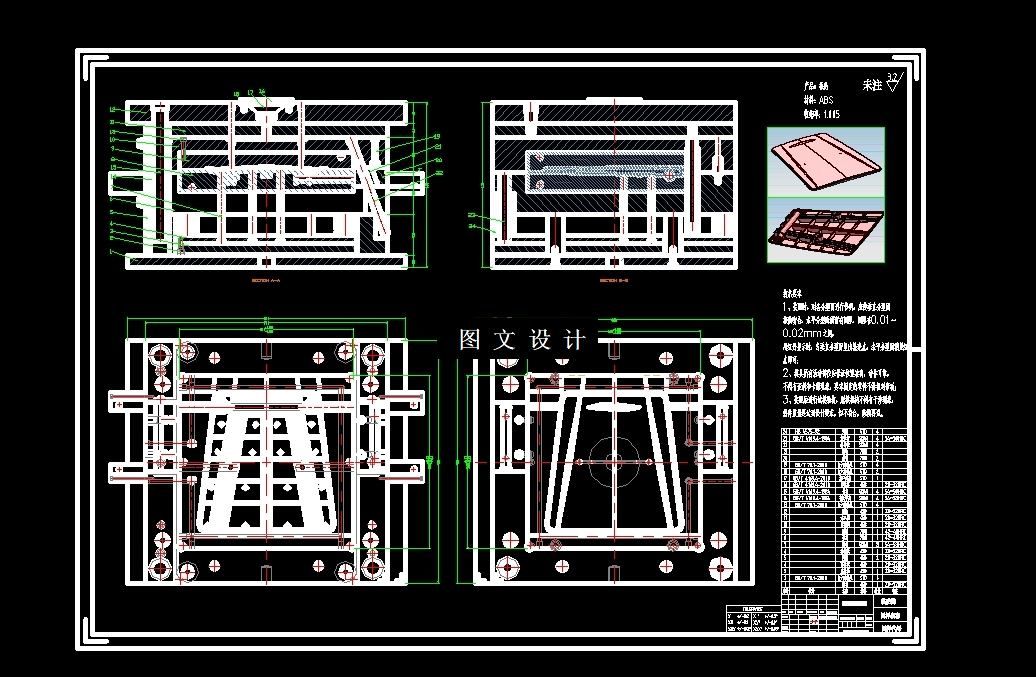 此设计为座椅板注射模设计(17047),采用一模一腔,点浇注口进行填充,提供三维(UG格式)+二维装配图1张及主要零件图12张+模流分析+设计报告文档( 文档约1.5W字 56页)。采用了一模一腔配合点胶口的浇口这种型腔布局的结构形式;另外,设计过程中利用了MOLDFLOW软件进行工艺优化;最后,对我们设计好的座椅板的三维模型图,进行转换和制图,出二维的装配的电子图档,以及塑件图,非标零件图这类工程图;根据设计好的图纸,进行最后的注塑机确认。