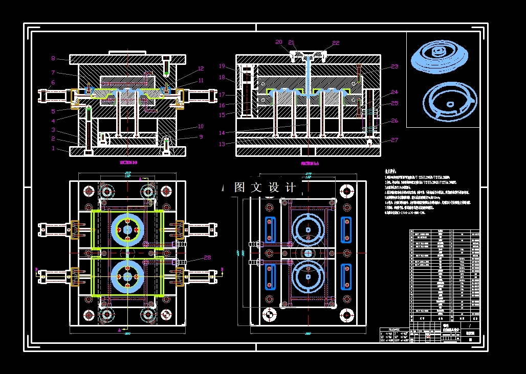 此设计为带轮注射成型模具及成型工艺设计(17027),采用一模二腔,侧浇注口进行填充,提供三维(UG格式)+二维装配图1张及主要零件图14张+设计报告文档( 文档约1.6W字 40页)。根据塑料制品的要求,了解塑件的用途,分析塑件的工艺性、尺寸精度等技术要求,考虑塑件制件尺寸。本模具采用一模两腔,侧浇口进料,注射机采用HT80W1×B型号,设置冷却系统,CAD和UG绘制二维总装图和零件图,选择模具合理的加工方法。附上说明书,系统地运用简要的文字,简明的示意图和和计算等分析塑件,从而作出合理的模具设计。