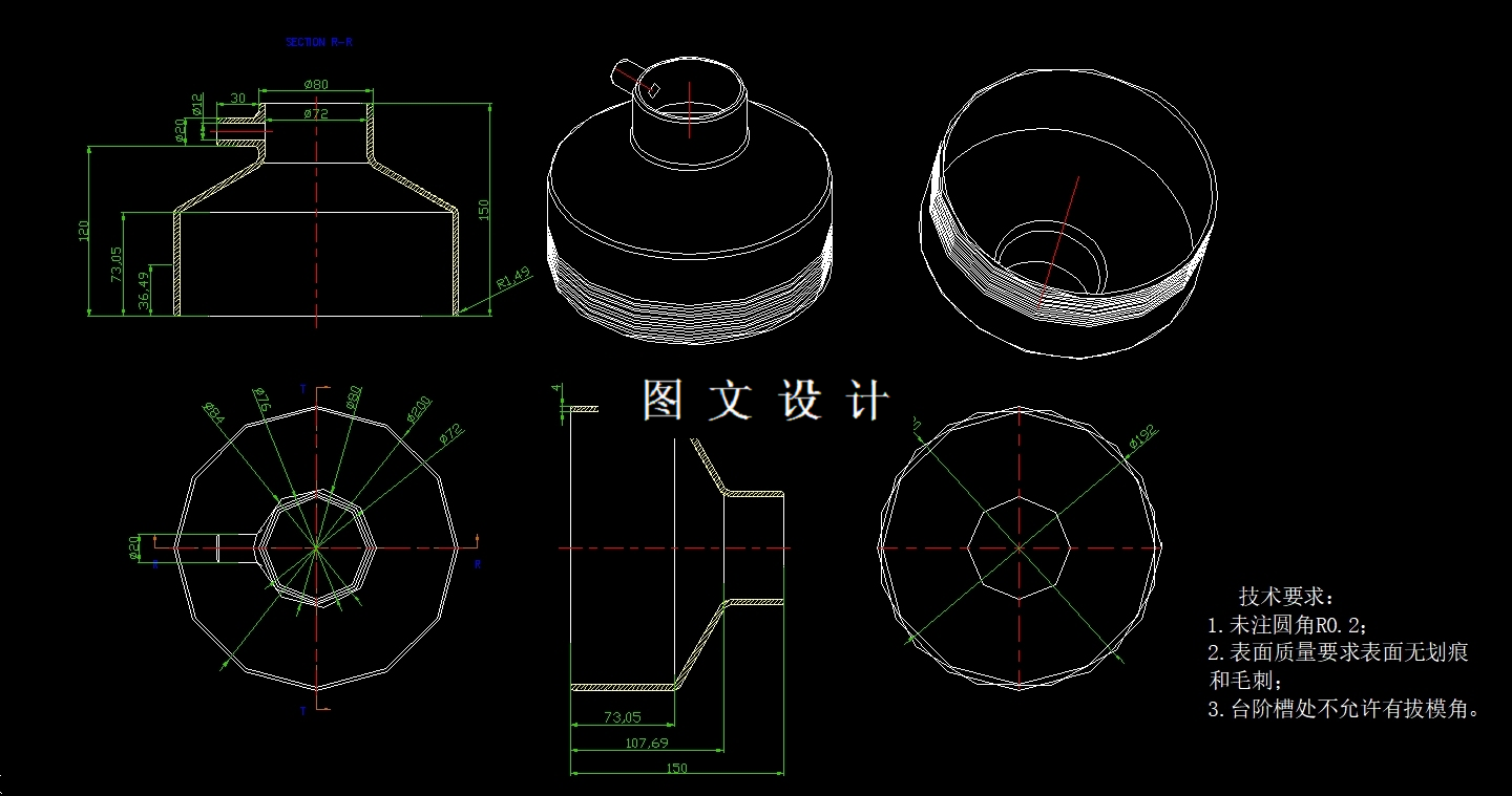 此设计为医用吸氧器部件注塑模具设计(18123),采用一模一腔,侧浇注口进行填充,提供三维(UG格式)+二维装配图1张及主要零件图12张+模流分析+编程仿真+工艺卡+设计报告文档( 文档约1.9W字 60页)。对零件的分型面的确定及选择,将采用一模一腔,零件外侧面的槽和孔使用斜导柱抽芯机构的脱模方式,为大水口二板式模架在零件的顶面中心孔里侧浇口进胶。本课题设计的模具具有良好的工作稳定性,结构比较紧凑,注塑过程比较平稳,而且冷却的效率也比较高,水路选择了环形冷却水路,它的直径为8mm。