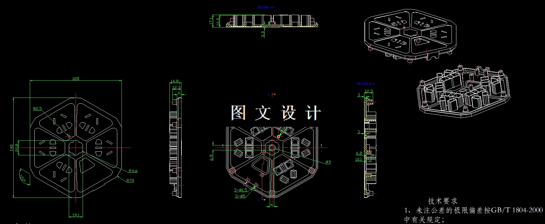 此设计为多功能USB插座注塑模具设计(18112),采用一模四腔,侧浇注口进行填充,提供三维(UG格式)+二维装配图1张及主要零件图11张+模流分析+设计报告文档( 文档约1.5W字 45页)。通过三维软件UG,对多功能USB插座进行模型的绘制,同时对模具的成型零件进行设计,并绘制出相关的零件图纸文档。设计过程中,模具选择一模四腔的结构,采用侧浇口以及环绕式冷却的方法,对产品进行注塑。
