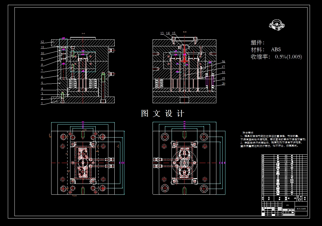 此设计为奥迪双钻陀螺发射仪下盖设计(18098),采用一模二腔,侧浇注口进行填充,提供三维(UG格式)+二维装配图1张及主要零件图16张+模流分析+设计报告文档( 文档约1.7W字 53页)。所设计塑胶制件产品的注射模具,在深入贴合技术塑件控制要求的分析结合下,在众多方案之中最终选中一模两件,射胶进入则为产品外边缘轮廓进浇。塑料成型机器设备采选常用国产侧卧躺式的F系列80XC型号。
