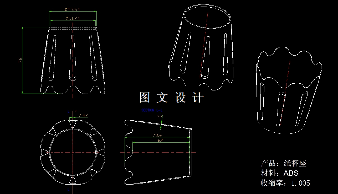 此设计为纸杯座造型以及注射模具设计(18064),采用一模二腔,点浇注口进行填充,提供三维(UG格式)+二维装配图1张及主要零件图8张+设计报告文档( 文档约1.1W字 27页)。确定所需的模塑成型方案、制品的后加工、分型面的选择、型腔的数目选定为一模二腔,将他们上下平均排列、还对成型零件的结构等进行了分析。脱模机构采用了5支8mm圆柱推杆做为顶出脱模。