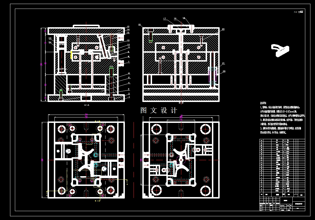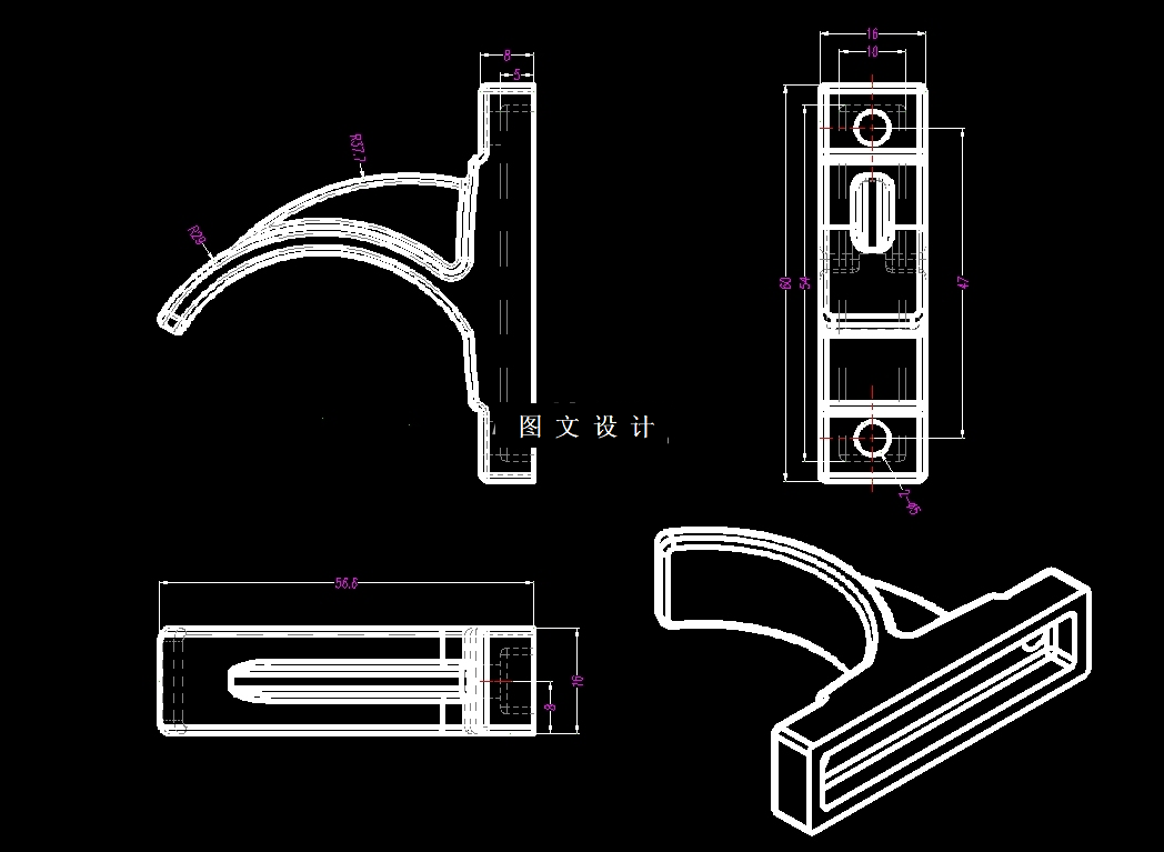 此设计为挂钩成型工艺与模具设计(18023),采用一模二腔,侧浇注口进行填充,提供三维(UG格式)+二维装配图1张及主要零件图12张+设计报告文档( 文档约1.1W字 37页)。利用UG软件对塑件进行建模,选择合适的位置做为模具的分型面,并进行三维建模,合理设计各个成型零件。由于塑料件内部有侧孔,所以采用滑块机构成型,虽然这一机构会增加模具的难度让模具变成复杂,但是这是模具必须有的机构,不可避免。